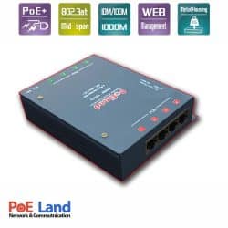 پچ پنل PoE مدل PoELAND-1004G دارای ۴ پورت ۱۰/۱۰۰/۱GBase-T ، دارای توان کلی ۱۲۰ وات (هر پورت ۳۰ وات) و پشتیبانی از استاندارد ۸۰۲.۳at/802.3af می باشد، پچ پنل POE مدل ۱۰۰۴G یک راه حل سریع، ایمن و مقرون به صرفه برای کسب و کارهای کوچک و شرکت ها می باشد.